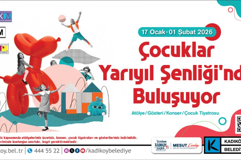 Kadıköy Belediyesi, yarıyıl tatiline giren çocuklar için dopdolu bir Yarıyıl Şenliği hazırladı. Atölyelerden çocuk oyunlarına, konserlerden gösterilere uzanan renkli etkinlikler, 17 Ocak –01 Şubat tarihleri arasında çocuklarla buluşacak.