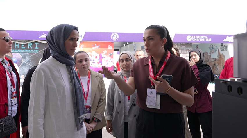 KADEM Vakfı Mütevelli Heyet Başkanı Sümeyye Erdoğan Bayraktar, TEKNOFEST 2025’te Bağcılar Belediyesi Feyzullah Kıyıklık Engelliler Sarayı standını ziyaret etti. Teknoloji sınıflarında hazırlanan robot ve ürünleri yakından inceleyen Erdoğan, Engelliler Sarayı’nın çalışmalarını çok beğendi.
