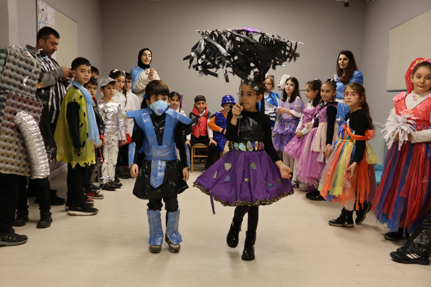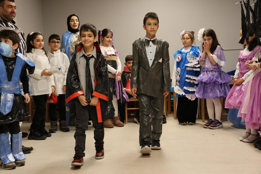 Etkinlikte, öğrenciler tarafından biriktirilen atık malzemeler; plastik şişeler, eski gazeteler, kumaş parçaları ve diğer geri dönüşümlü malzemeler, şık kıyafetlere dönüştürüldü. Her bir tasarım, atığın aslında ne kadar değerli bir kaynağa dönüşebileceğini gösteren birer sanat eseriydi. Geri dönüşümün, çevreye duyarlı ve sürdürülebilir bir yaşam için ne kadar önemli olduğu, öğrenciler tarafından uygulamalı bir şekilde anlatıldı.